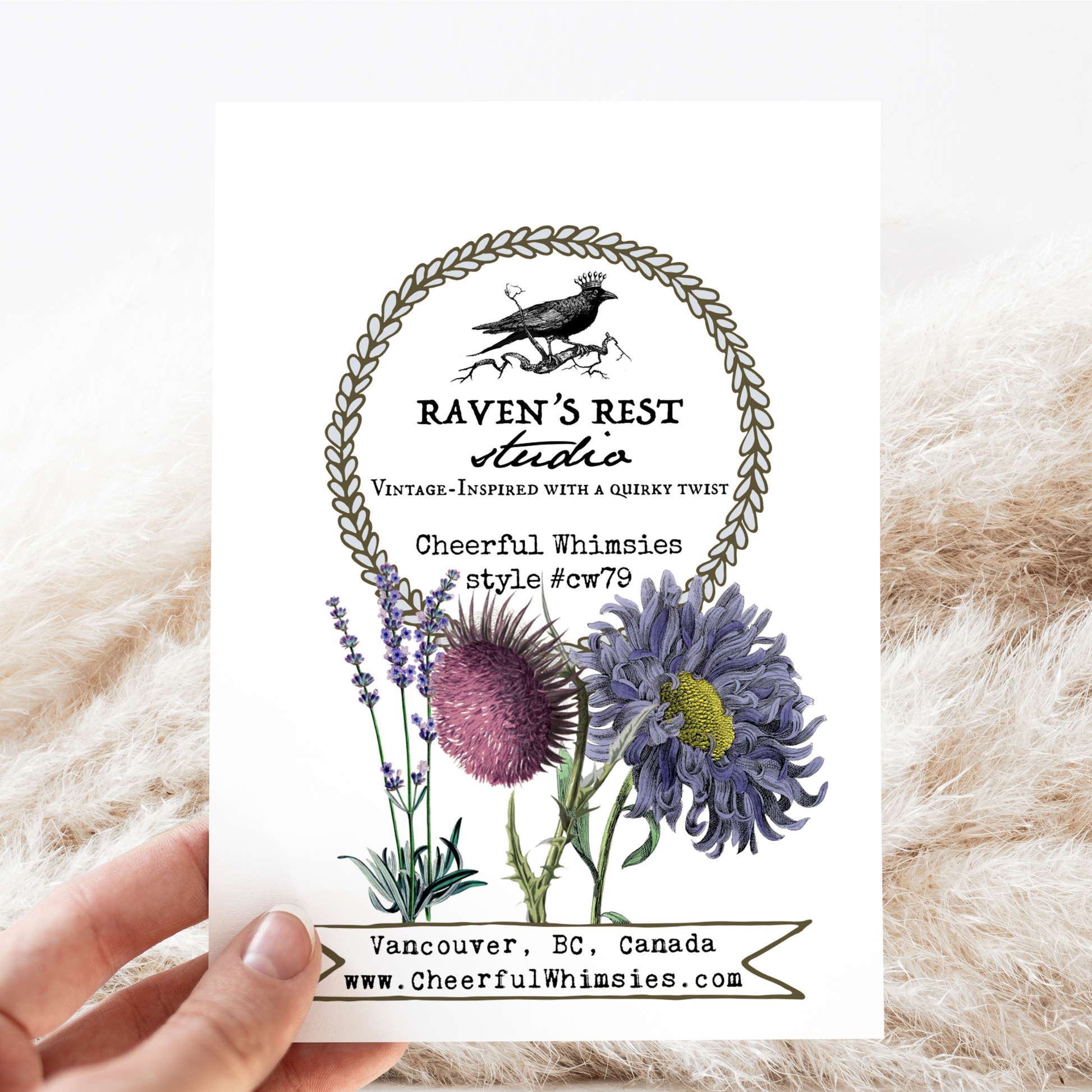 Birthday Card. Vintage Butterfly. Purple Flowers. Floral.