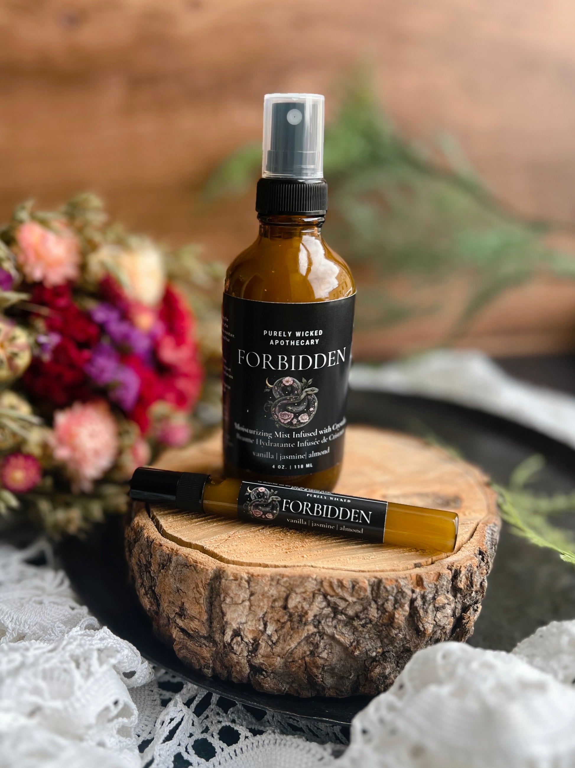 - Forbidden Gift Set includes Candle, Body Oil, Moisturizing Mist