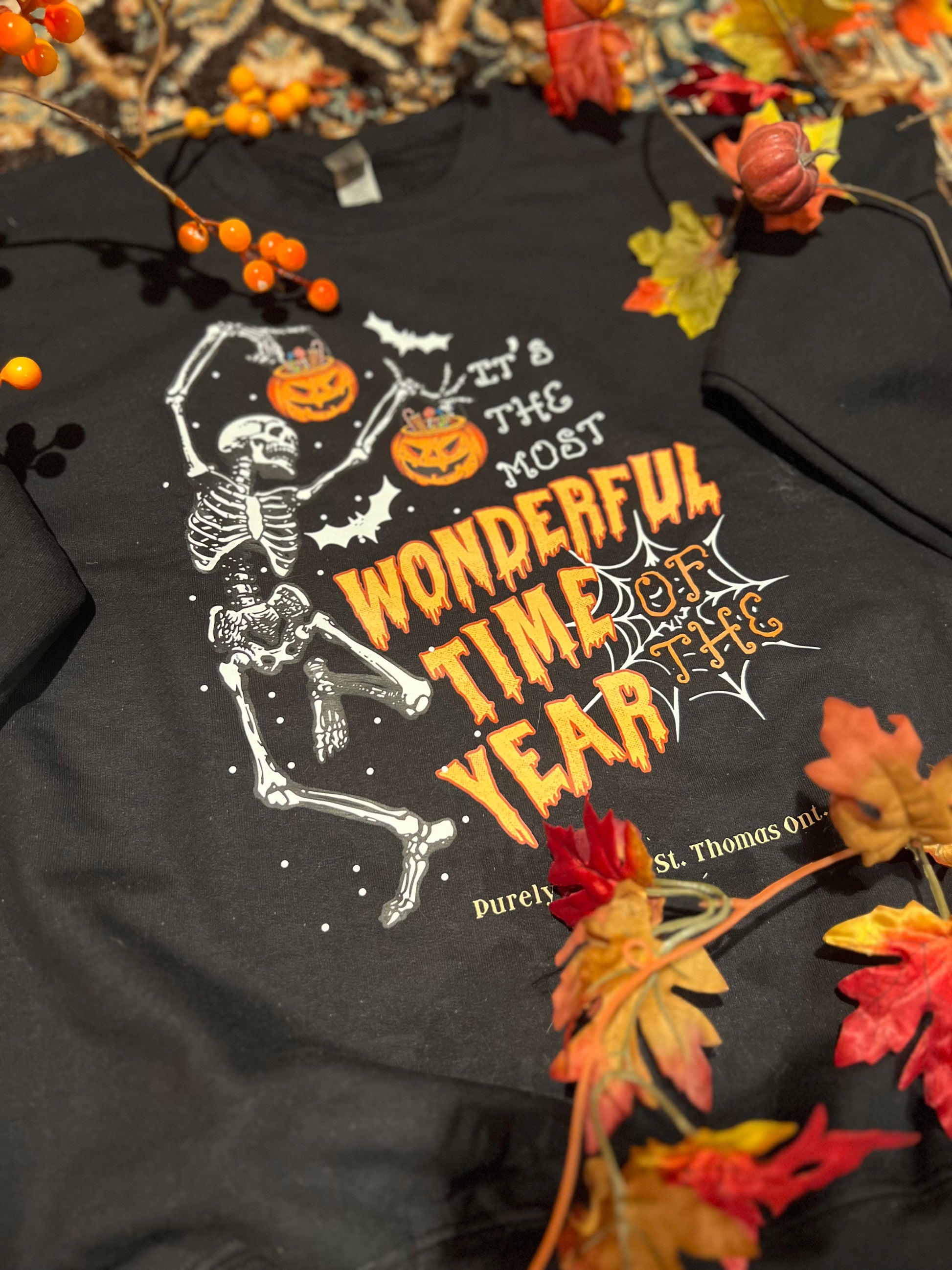 Get ready to rock the spooky season in style with our "It's the Most Wonderful Time of the Year" Halloween sweatshirt! Perfect for when you want to mix a little festive cheer with your fearsome flair. Whether you’re haunting the neighborhood or just binge-watching horror flicks, this cozy gem will keep you warm while you celebrate the ghoulishly great time of year. Trick-or-treat yourself to the most wonderfully wicked sweatshirt ever!
