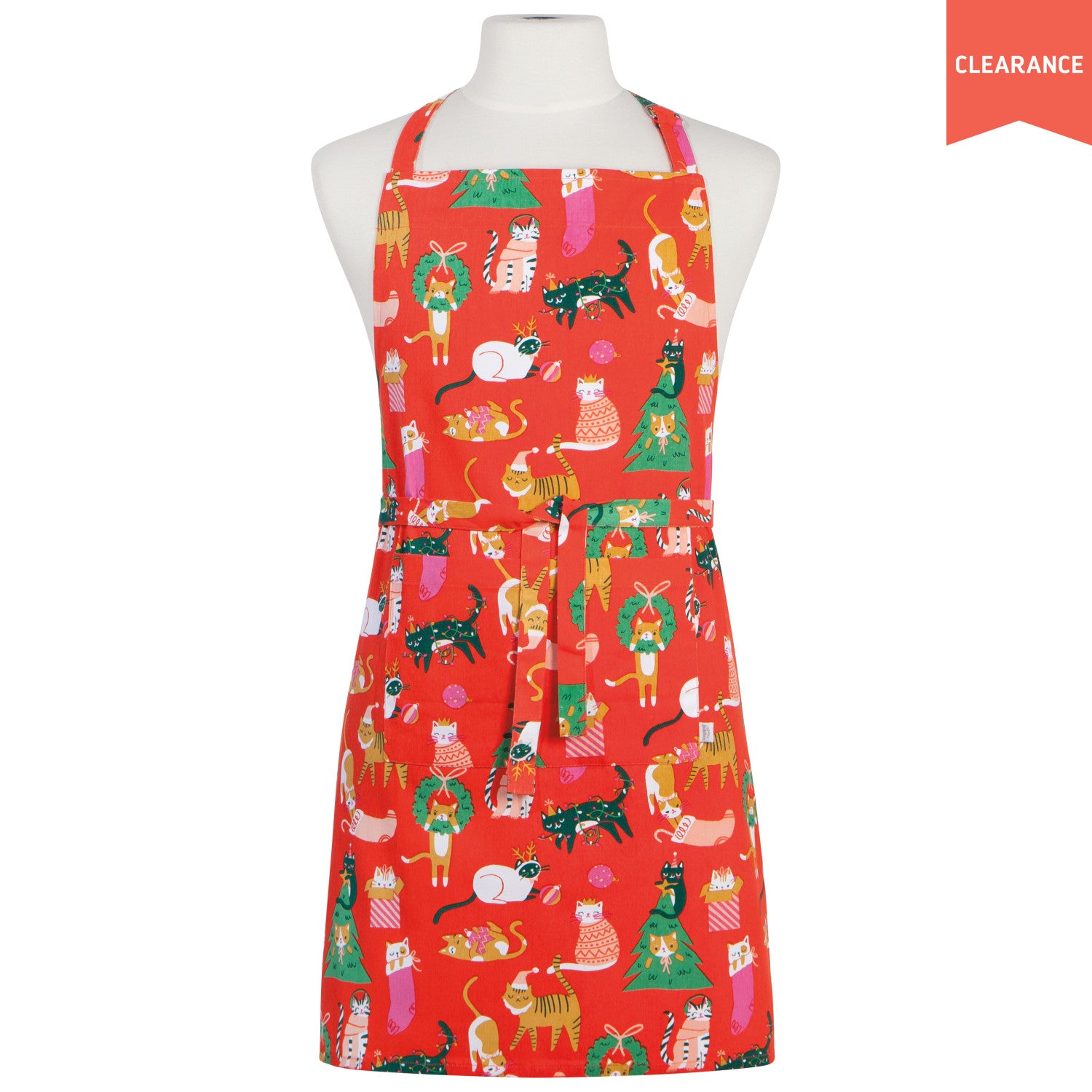 This patterned apron spins a yarn of festive felines getting up to some mischievous merry-making. Made of 100% cotton and machine washable, this kitchen apron is gift-ready and sure to be a welcome addition to any chef’s kitchen.