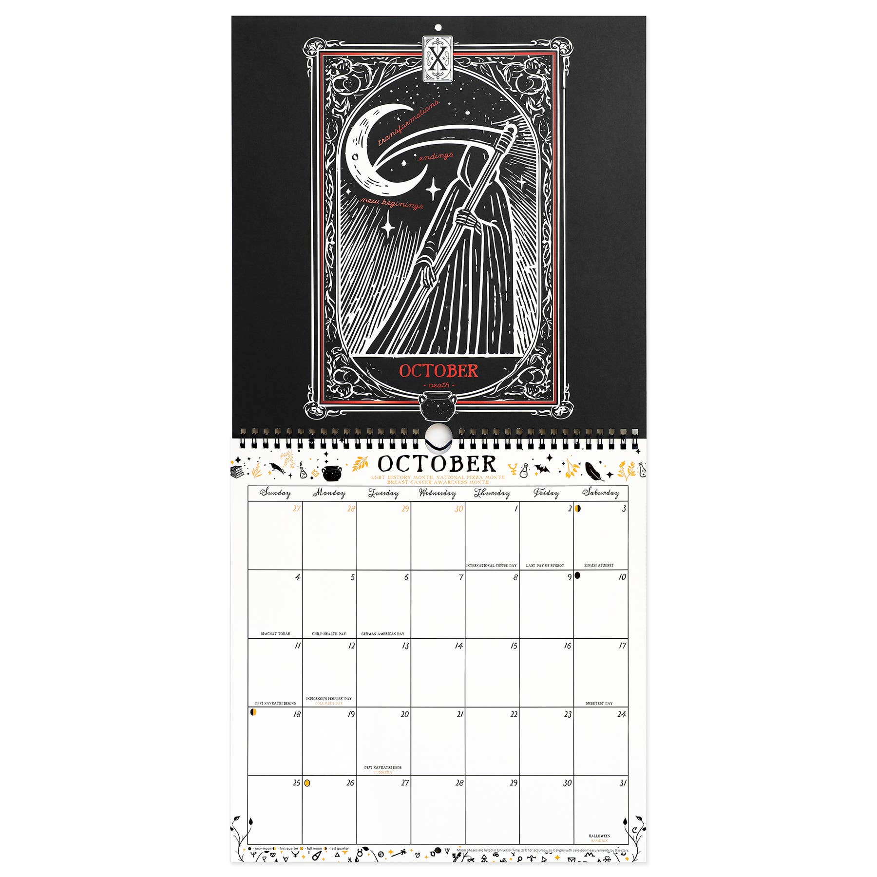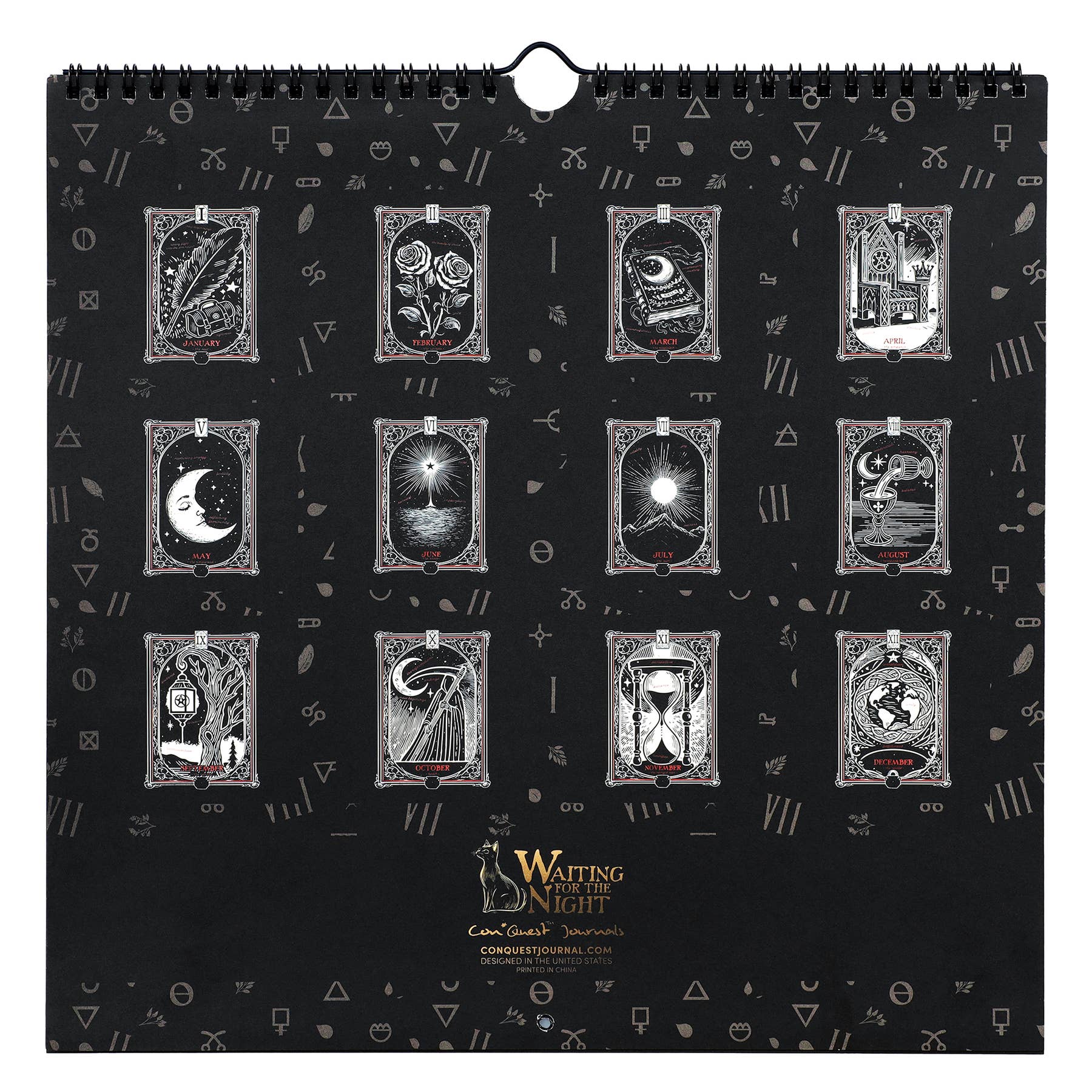 This Waiting for the Night 2026 Spiral Wall Calendar is a total vibe. With moody artwork and gothic charm, it’s perfect for planning your year in dark style. Measures 12" x 12" (closed) / 12" x 24" (open) and features 12 tarot-inspired monthly illustrations with bats, ravens, cauldrons, moon phases, holidays, and more. Printed on 300 gsm writable paper for your plans and dark deeds. Stay organized with a touch of gothic elegance all year long. Product Details: - Dated January - December 2026 - Features 12 unique monthly spreads with tarot card-inspired artwork alongside spacious calendar layouts - Includes holidays & notable dates