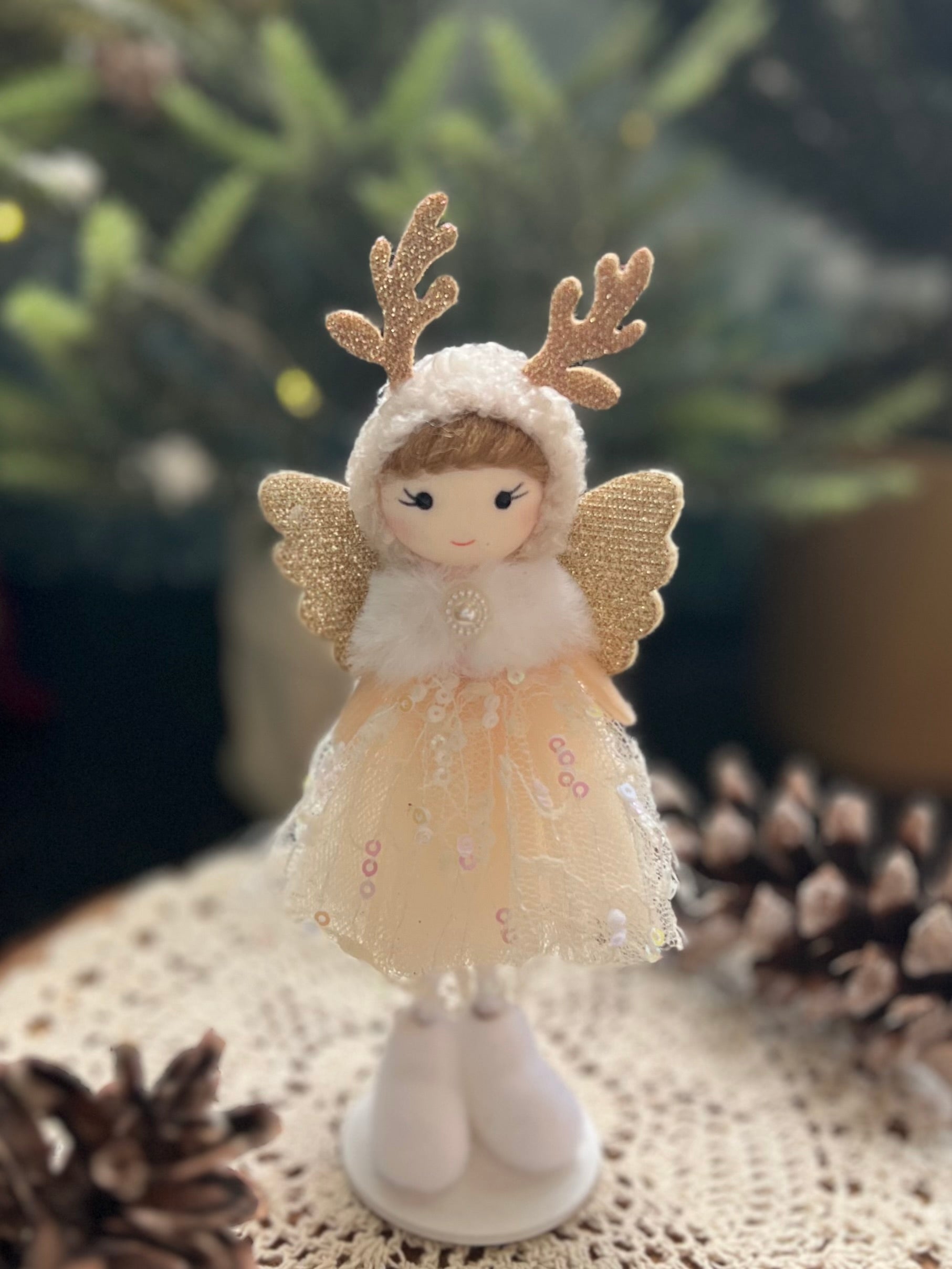 6.25" Sequin White and Gold Polyester Cherubic Flying Angel Ornament with Dangling Legs. Product is handmade. You can't go wrong with this cute Ornament. With a fresh White and Gold shine, it's just what you need for adding a yuletide and folksy touch.